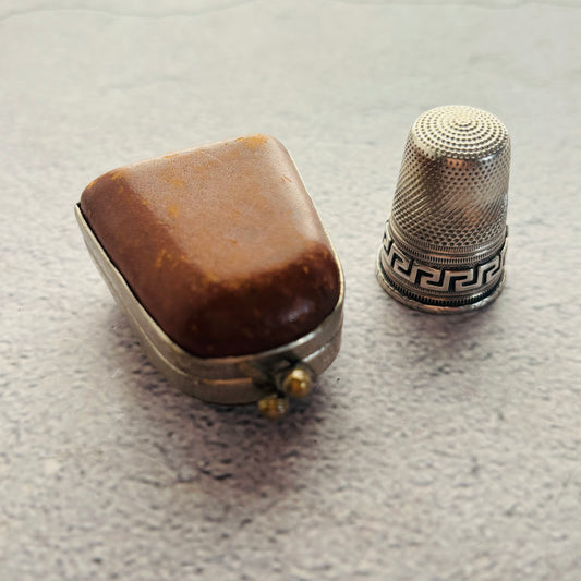 Antique Silver Thimble and Case