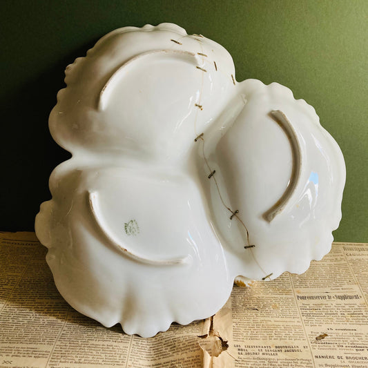 Antique Limoges Three Section Serving Dish with Rivet Staple Repairs