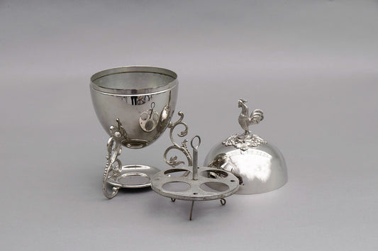 The Groom Steve - Silver Plated Egg Coddler with Rooster Finial