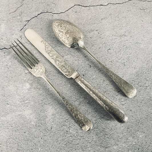 The Headhunter Stef - Engraved Antique Silver Cutlery Christening Set