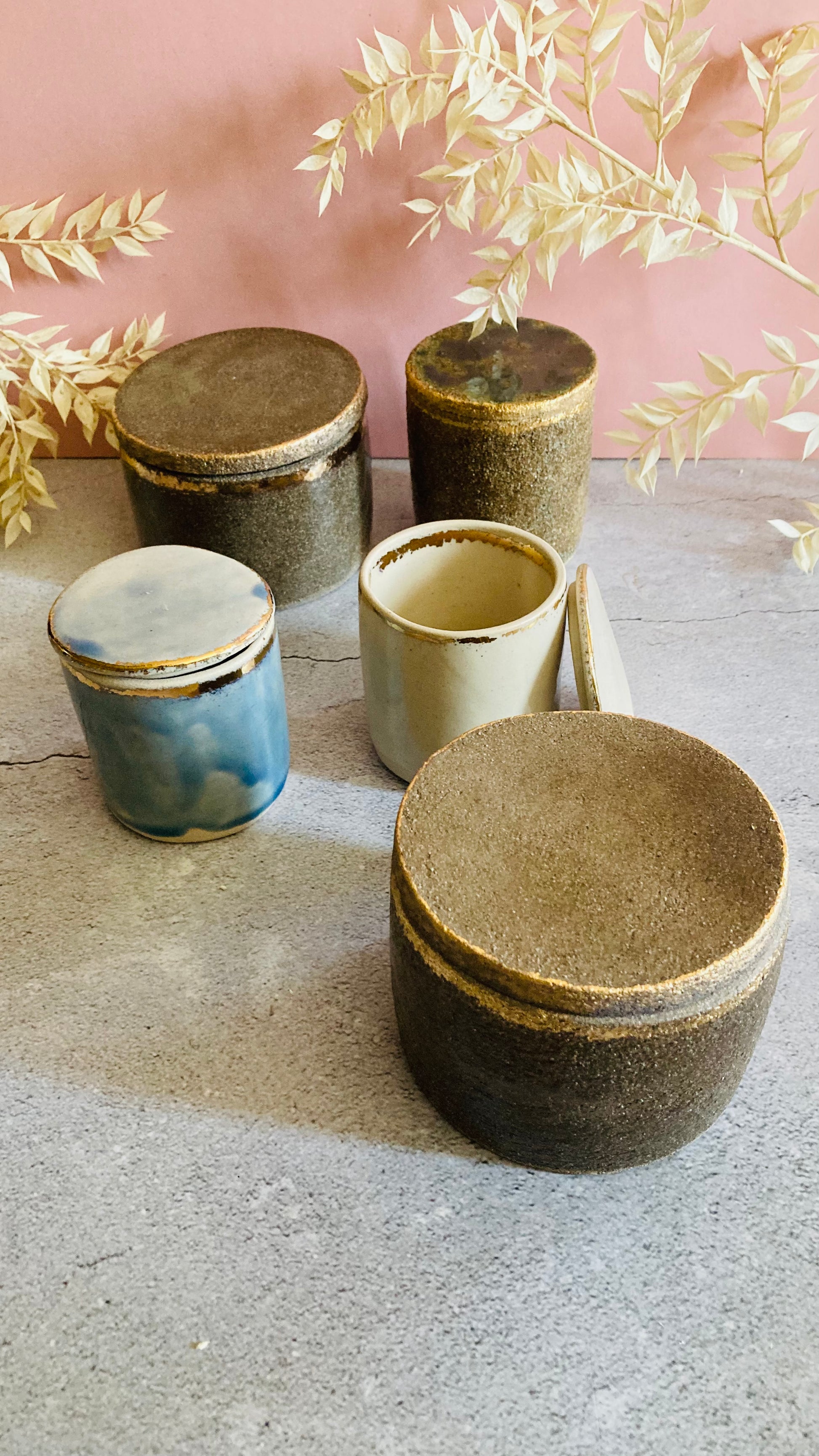 Ava comes in two options where her lid is finished with a mottled sea blue glaze or a clear glaze and slightly lighter body. She has been slow made with loving care. Each piece is unique in character and shape and finish.