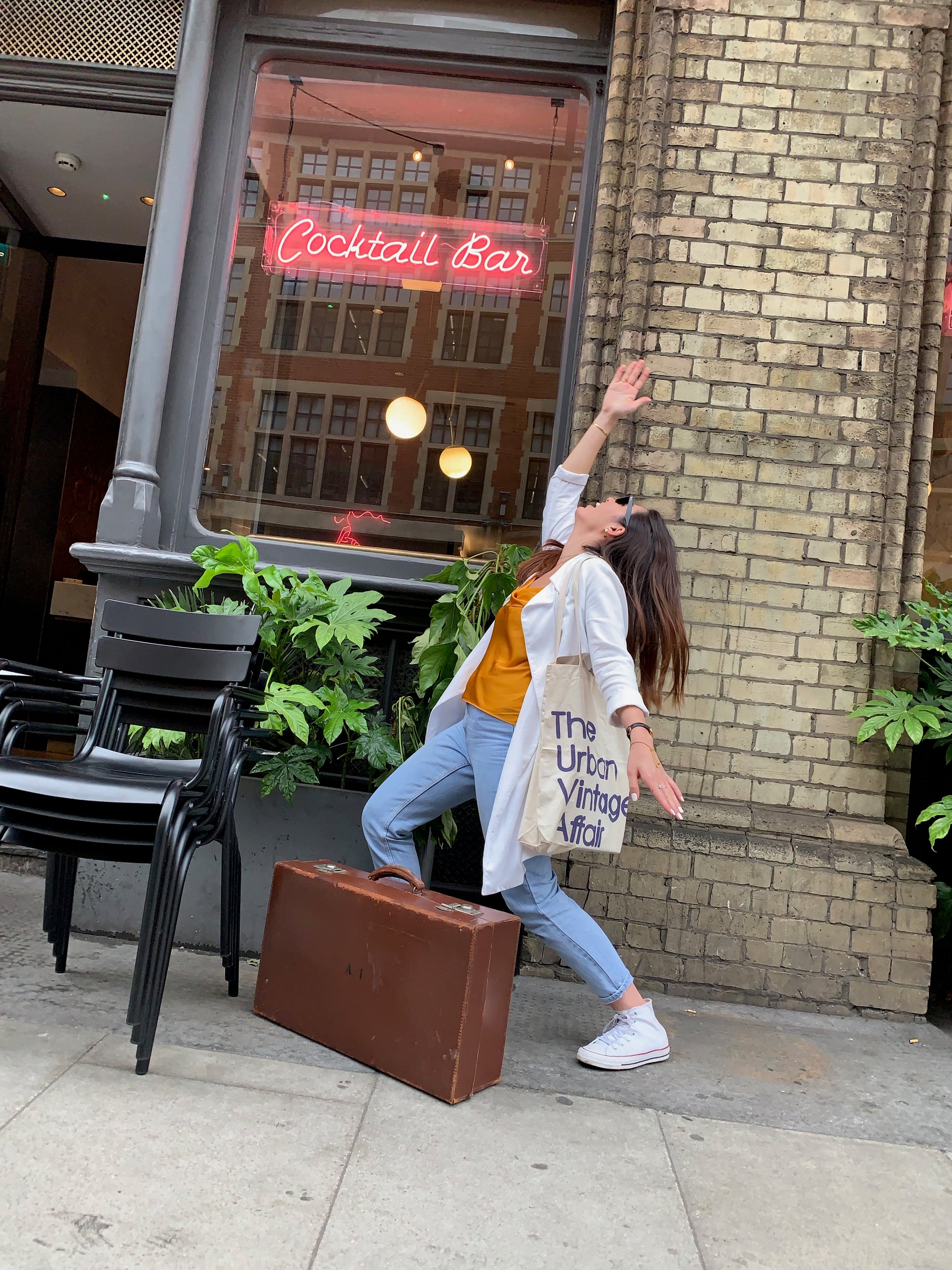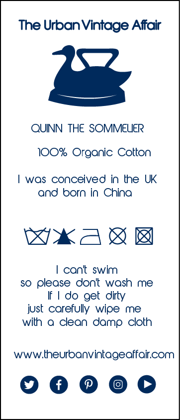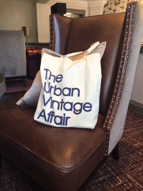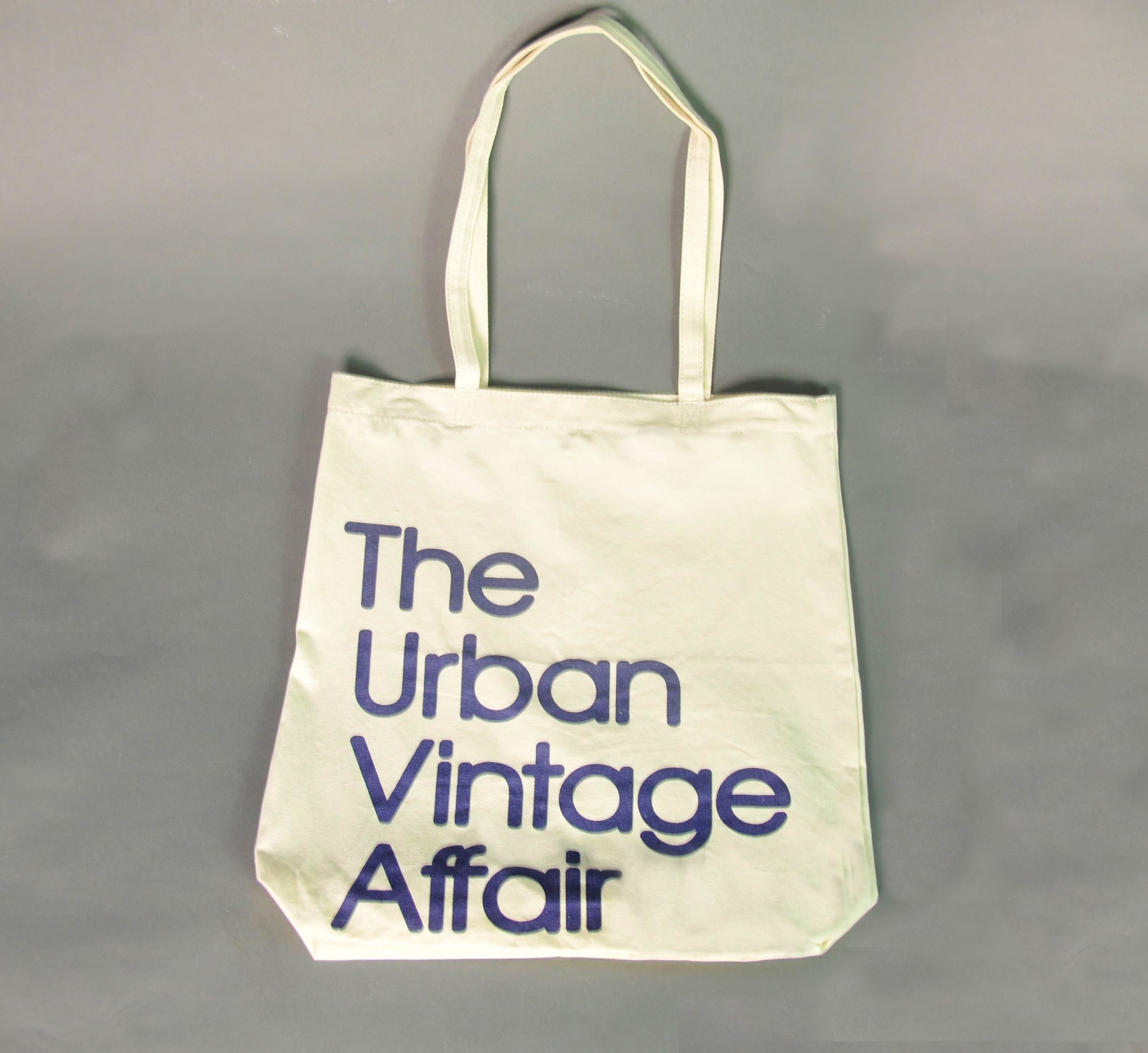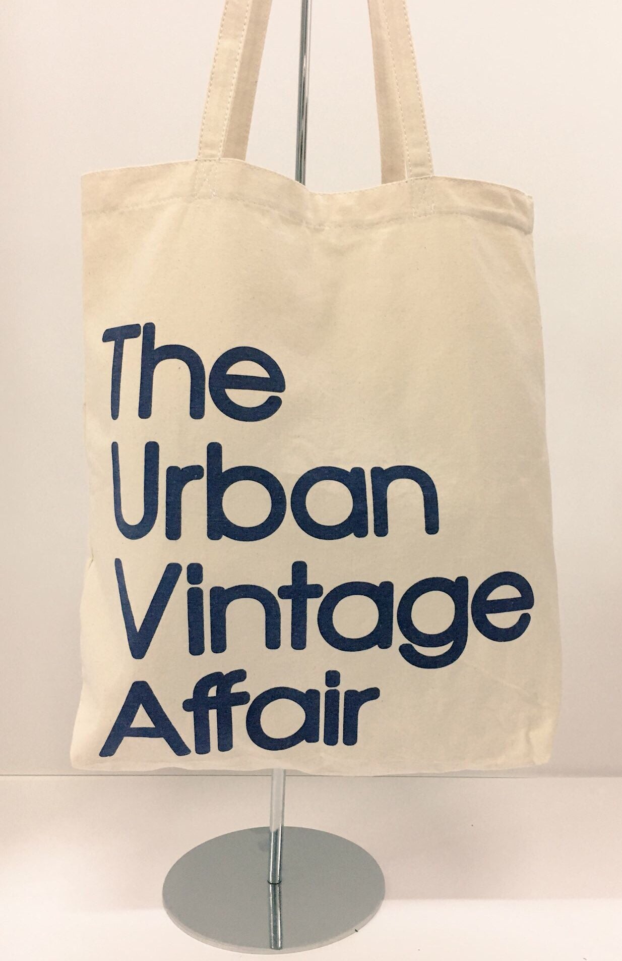 The Sommelier Quinn tote bag combines sustainability with style, crafted from durable 9 oz unbleached 100% organic cotton canvas. Expertly screen printed in navy, it features the distinctive 'The Urban Vintage Affair' logo on one side, reflecting a commitment to quality and eco-conscious design. Its bottom gusset expands the carrying space, making Quinn ideal for everyday use, whether shopping or carrying essentials. This tote offers a practical, environmentally friendly alternative to synthetic bags, perfect for those who value both function and responsible fashion.