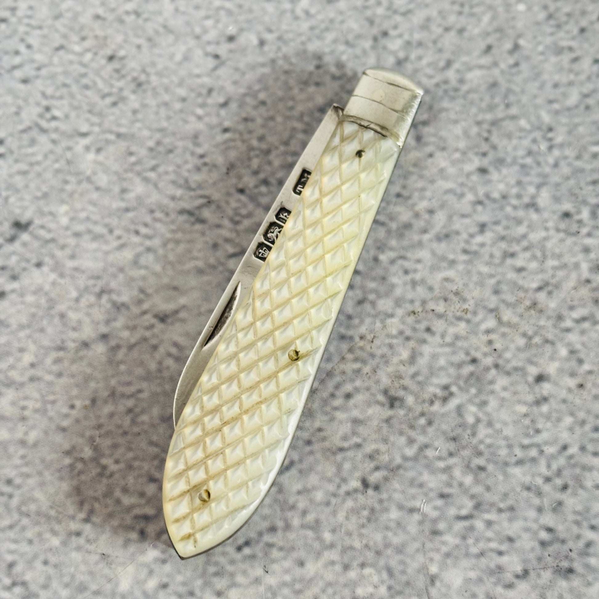 Antique Silver and Mother Of Pearl Folding Fruit Knife 1902