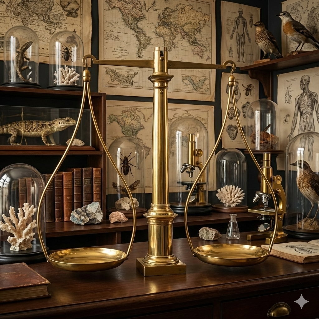 Both her formed wire supports are fixed to circular trays. These hook on and off the iron balancing beam.