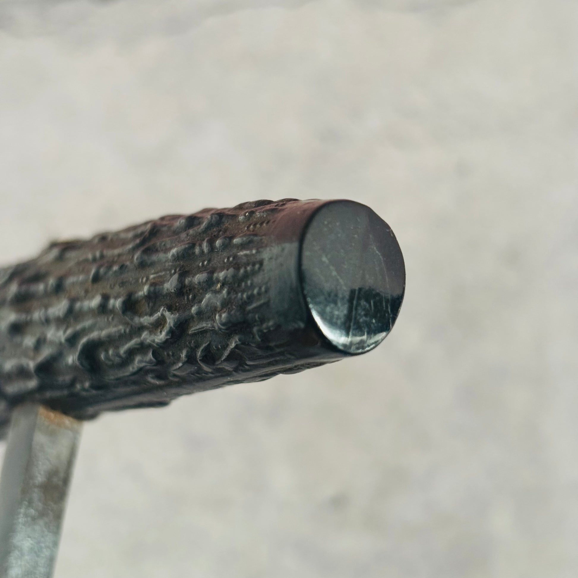 One end has a sharp steel point which was used to pick the wax off the bottle opening or used to break the wire or string that was often used to hold the cork in place.