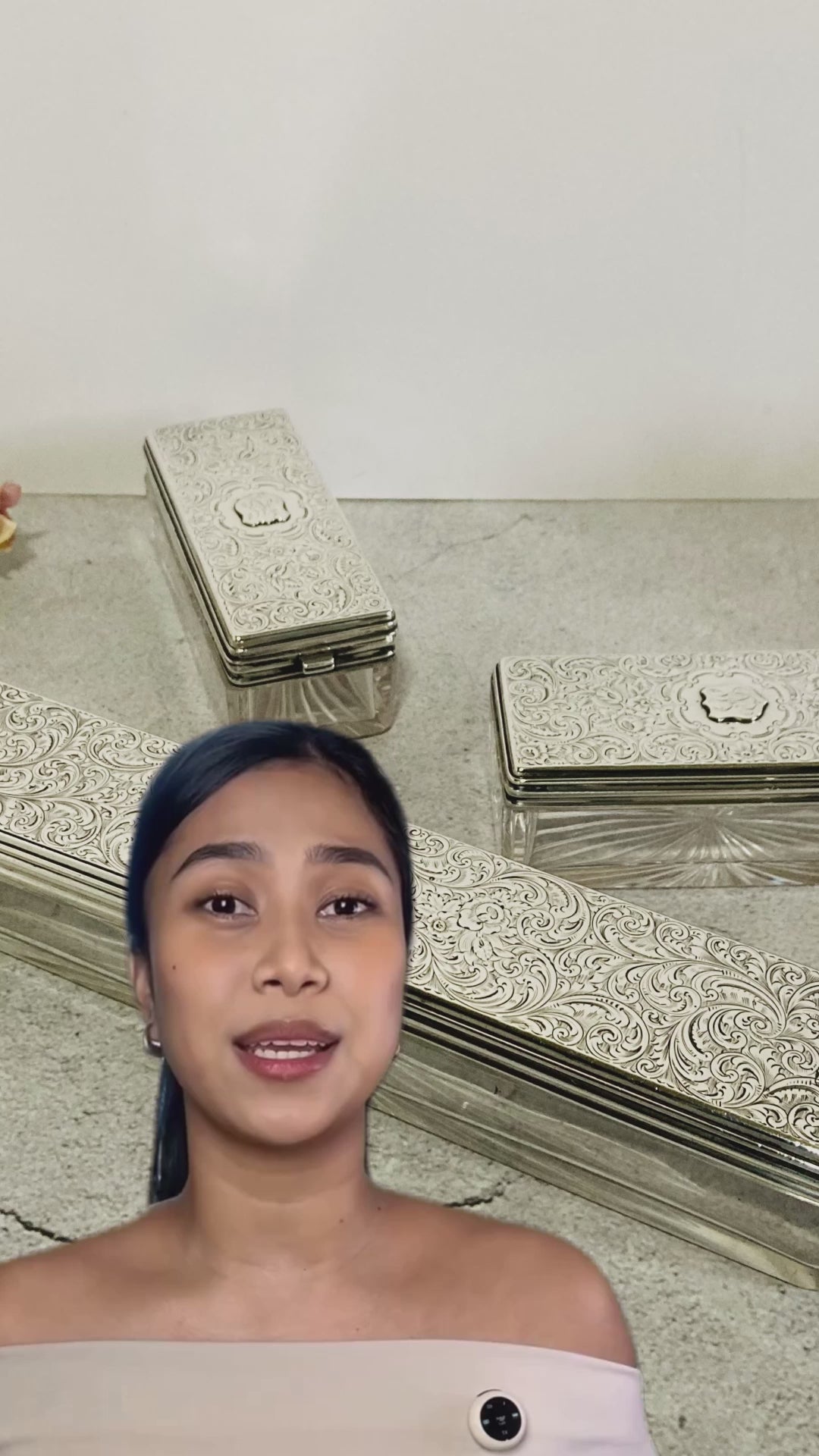 Kira is a set of 3 Victorian vanity box containers.